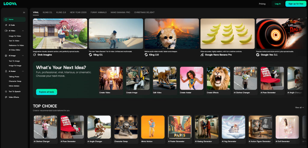 Create videos from text using advanced AI video models at Loova in 2026. There are AI video generators, AI video effects, personal video creators, and much more. Loova integrates the highest quality AI models for content creators, marketers, and businesses.